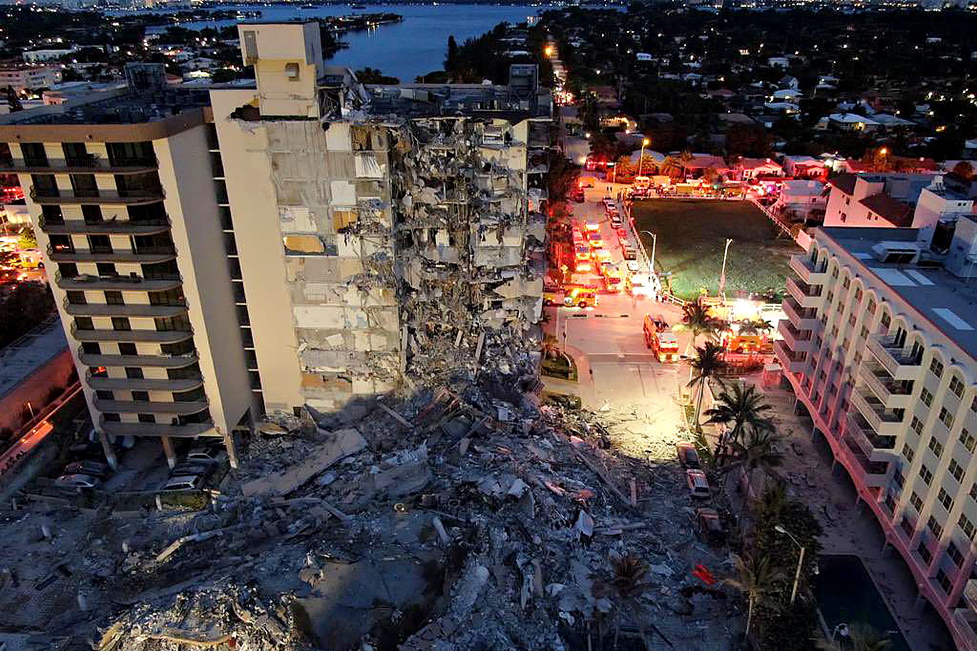 El derrumbe del costado frente al mar dejó un muerto, vecinos atrapados entre escombros y hierros, y una nube de polvo que cubrió los autos estacionados a dos cuadras de distancia, informaron las autoridades. Cámaras de seguridad registraron la caída del edificio champlain towers esta madrugada en surfside, miami; Al menos un muerto, una decena las causas del derrumbe del edificio, que fue inaugurado en 1981, no están claras y ya hay una investigación en marcha. De acuerdo con la sargento de la policía de surfside marian cruz señaló que el edificio tenía 12 pisos y toda la parte trasera del inmueble se derrumbó. Noticias univision 23 conoció el video de un grupo de bomberos que se encuentra al interior de la estructura que colapsó durante la madrugada de un edificio de 12 pisos se derrumbó parcialmente en la madrugada de este jueves en surfside, justo a una calle del límite de la ciudad de miami beach. Se trata de una construcción de doce pisos conocida como champlain towers, en la zona de surf side, cerca de. Cuatro argentinos se encuentran entre las personas desaparecidas tras el derrumbe esta madrugada de un edificio de doce plantas en la ciudad el derrumbe se produjo entre las calles 88 y collins avenue, en surfside, cerca de miami beach, en un edificio que compone parte del complejo. Latinoamericanos entre desaparecidos por derrumbe de edificio en miami. El colapso dio lugar al despliegue de los servicios de emergencia que se encuentran trabajando en la zona en búsqueda de sobrevivientes. Más de 80 unidades de bomberos trabajan en el lugar. En ese marco, casi un centenar de bomberos trabajó durante toda la madrugada. El derrumbe del edificio de doce plantas entre las calles 88 y collins avenue, en surfside, miami provocó un enorme despliegue de bomberos que trabajaron durante toda la madrugada. Hasta el momento, la policía ha confirmado la muerte de una persona y decenas de heridos.